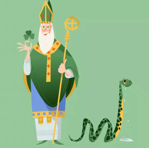 这就要提到爱尔兰的守护神圣帕特里克了!传说在5世纪,这位圣人在一座山顶上祈祷,突然遭到蛇群围攻。只见圣帕特里克不慌不忙,举起手杖一挥——刹那间,所有蛇都被赶入大海,从此爱尔兰“永绝蛇患”。
