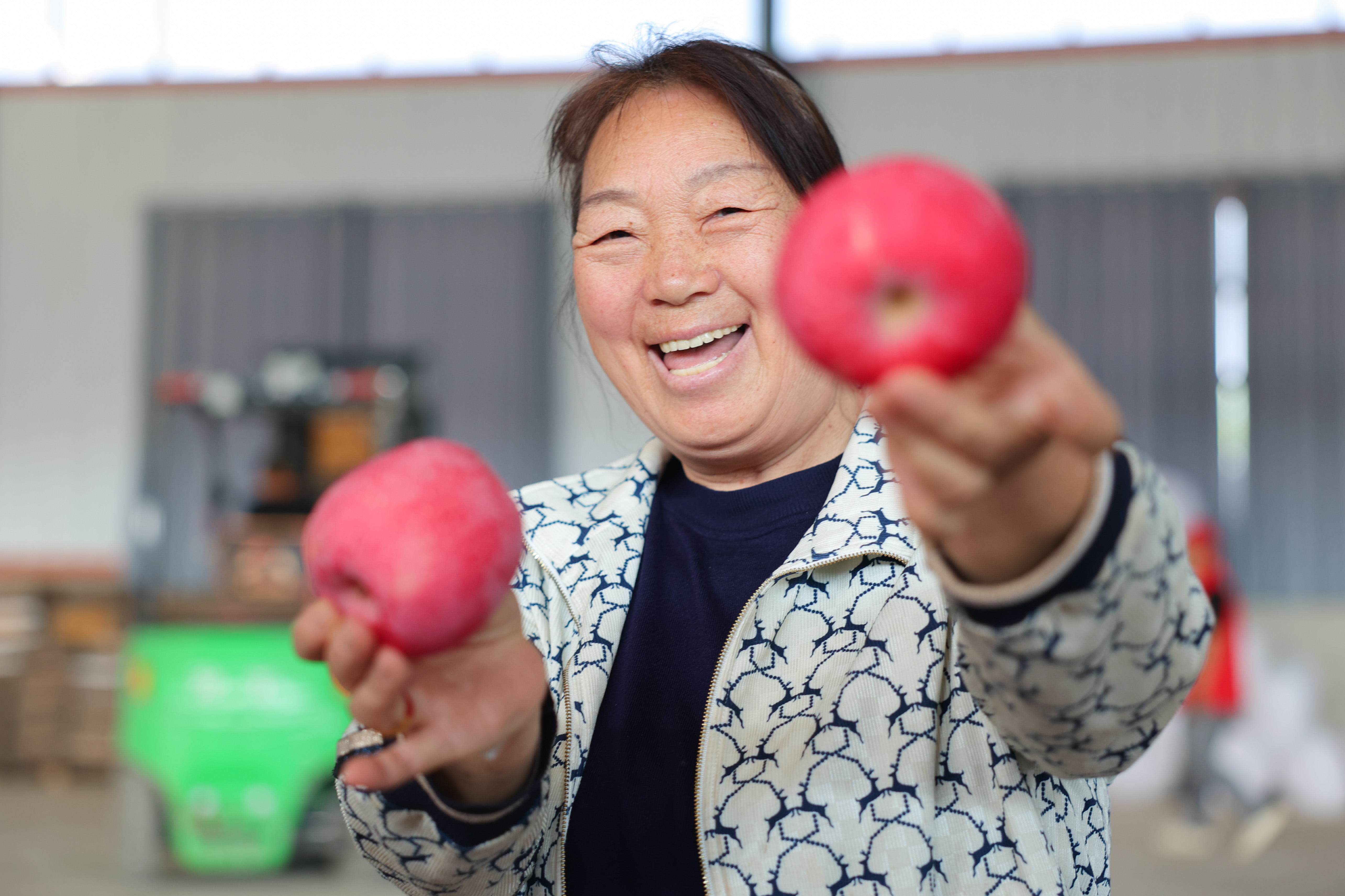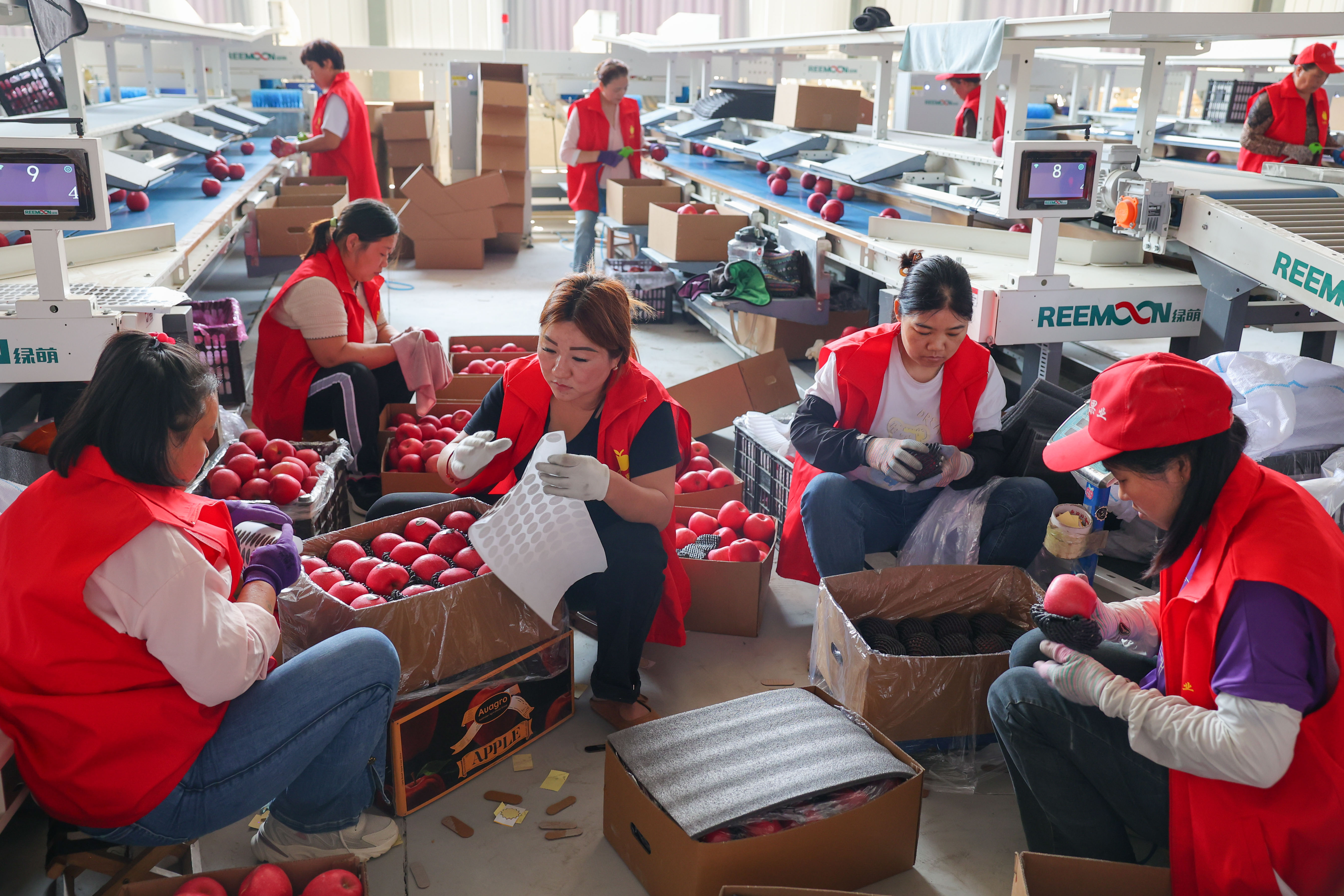 走进运城市万华果品股份有限公司,从冷库中取出的苹果被放在果品分拣设备上,经过一系列仪器设备,对苹果的重量、颜色、糖度、残次等进行量化分析、精准分级,层层筛选后分往不同轨道,一颗颗红彤彤的苹果通过人工的再次查验后才被装箱。