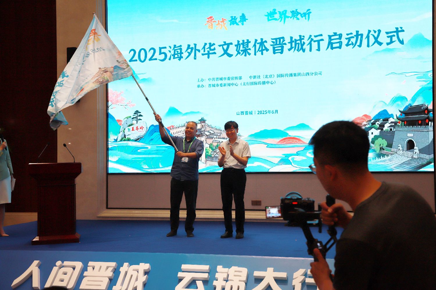随后,晋城市委常委、市委统战部部长石云峰为采访团代表授旗,并正式宣布“晋城故事世界聆听”2025海外华文媒体晋城行活动启动。
